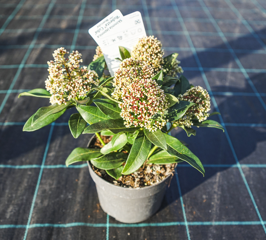 Skimmia japonica 'Moerings 4' RUBESTA® GIANT PINK skimie japonská (samčí)